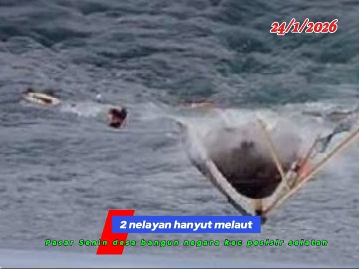 Pesisir Barat, LM – Dua orang nelayan asal Desa Bangun Negara, Kecamatan Pesisir Selatan, Kabupaten Pesisir Barat, dilaporkan hanyut terbawa arus laut saat melaut pada Sabtu dini hari (24/1/2026).
