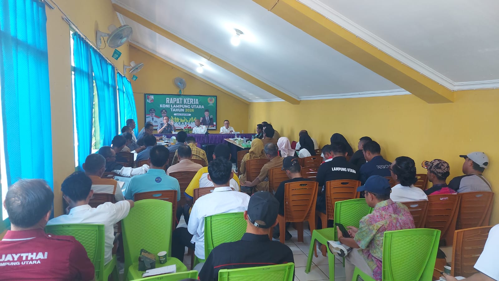 Lampung Utara LM – Matangkan kesiapan mengikuti ajang pekan olahraga Provinsi Lampung (Poprov), Komite Olahraga Nasional Indonesia (KONI) Kabupaten Lampung Utara (Lampura) gelar rapat kerja bersama pengurus cabang olahraga (Cabor) diaula KONI Lampura, Senin (13/4).