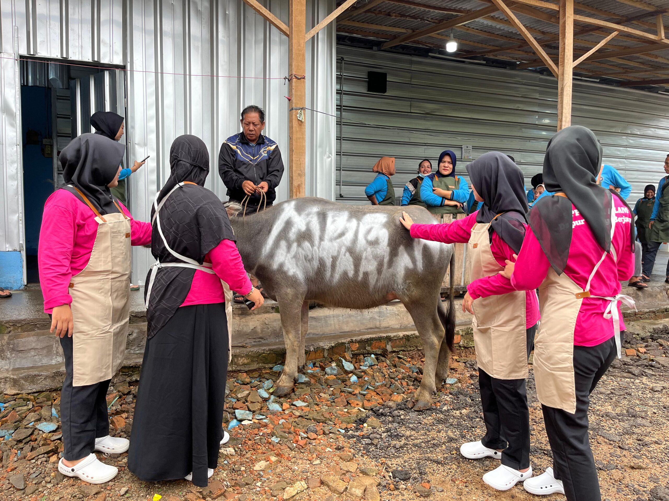“Kerbau yang sudah di potong akan kita masak jadi makanan yang sehat dan bergizi untuk anak anak yang menerima nya nanti” Ucapnya. (Ipul)